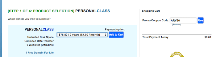 To use these coupons, just click on the big blue buttons below. A promo code will be copied to your clipboard. A new browser window will also open up and take you to Arvixe.com. There you can select your desired hosting plan, and then when you reach the shopping cart you can ‘paste’ the promo code in the entry field.