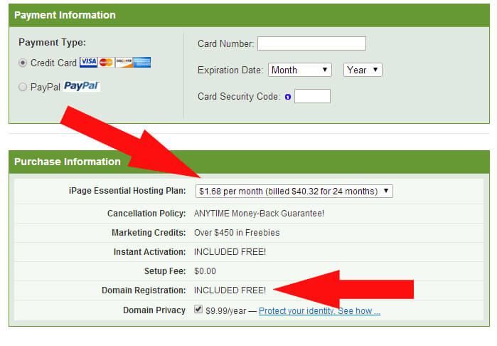 If you are hesitant about committing to a long term hosting contract keep in mind that iPage offers an Anytime Money-Back Guarantee. If you cancel your hosting plan at any time during the contract they will refund you the remainder of the hosting payment terms, and if you cancel within the first 30 days of signing up for your hosting plan they will refund you in full.